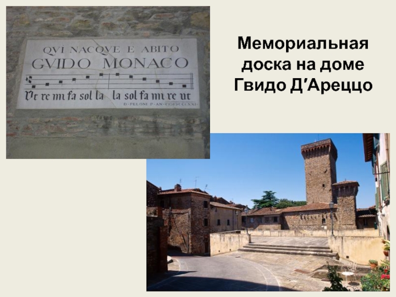Слайд 12Мемориальная доска на доме Гвидо Д′Ареццо