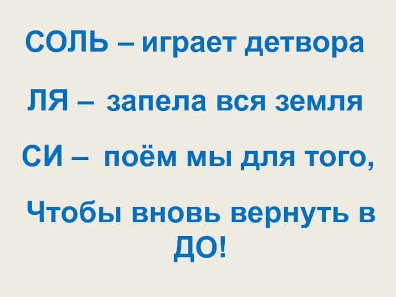 СОЛЬ – ЛЯ – СИ – Чтобы вновь вернуть в ДО!играет детворазапела вся земляпоём мы для того,