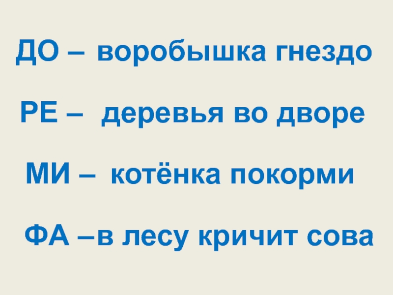 ДО – РЕ – МИ – ФА – воробышка гнездодеревья во дворекотёнка покормив лесу кричит сова