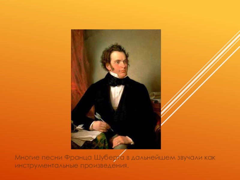 Слайд 10Многие песни Франца Шуберта в дальнейшем звучали как инструментальные произведения.