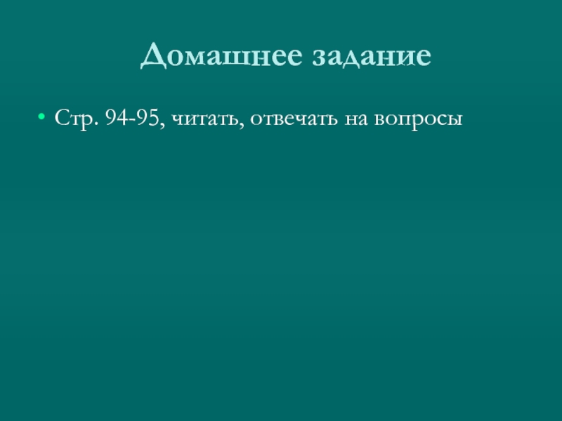 Домашнее заданиеСтр. 94-95, читать, отвечать на вопросы