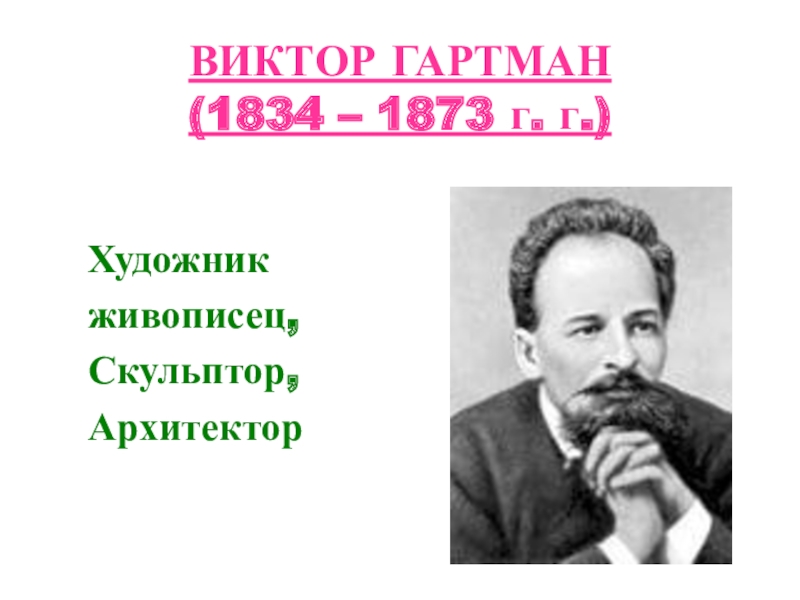 ВИКТОР ГАРТМАН  (1834 – 1873 г. г.)	Художник 	живописец,	Скульптор,	Архитектор