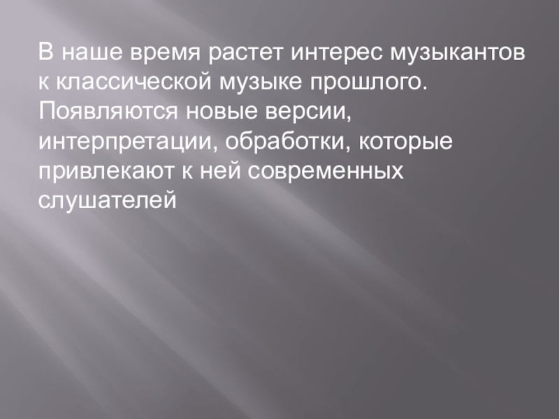 Слайд 8В наше время растет интерес музыкантов к классической музыке прошлого. Появляются