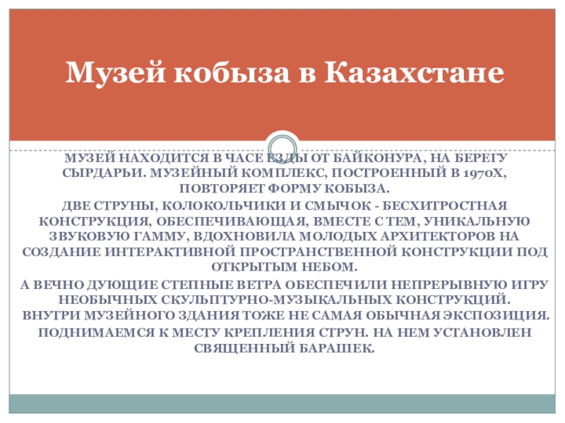 Звучание кобыза неповторимо и волшебно, его мелодии, проникают глубоко в душу.