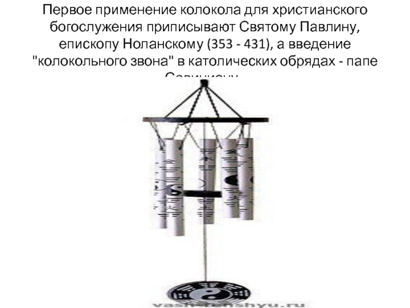 Слайд 6Первое применение колокола для христианского богослужения приписывают Святому Павлину, епископу Ноланскому