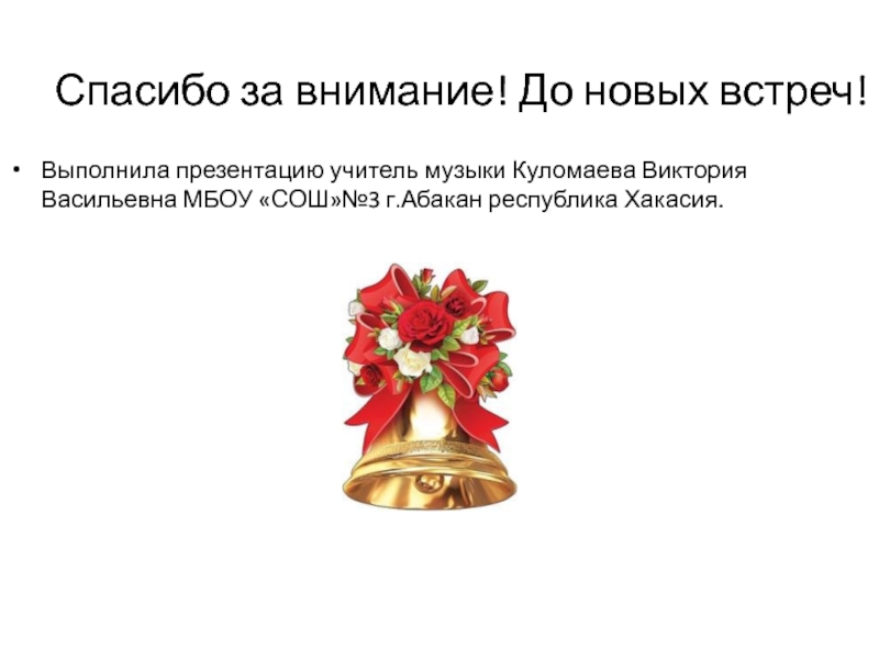 Выполнила презентацию учитель музыки Куломаева Виктория