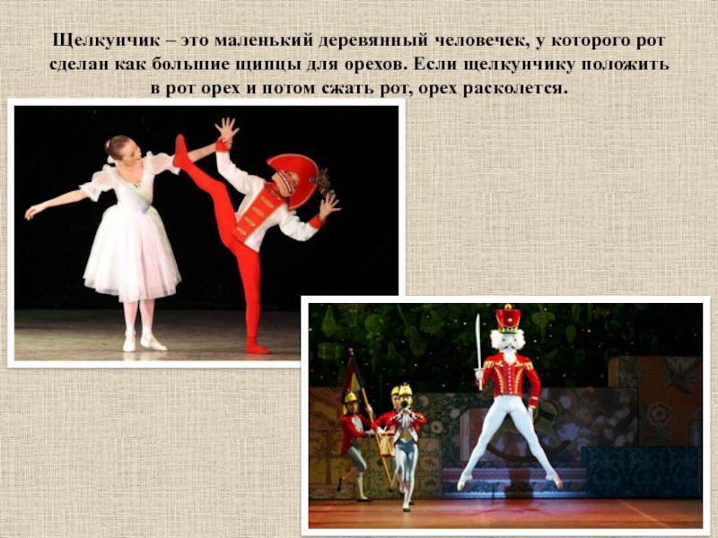 Слайд 8Щелкунчик – это маленький деревянный человечек, у которого рот сделан как