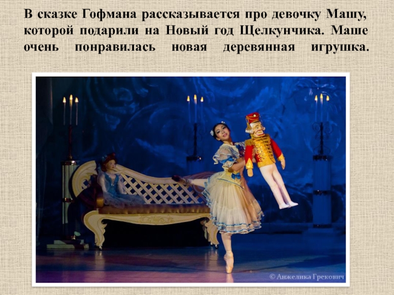Слайд 9В сказке Гофмана рассказывается про девочку Машу, которой подарили на Новый