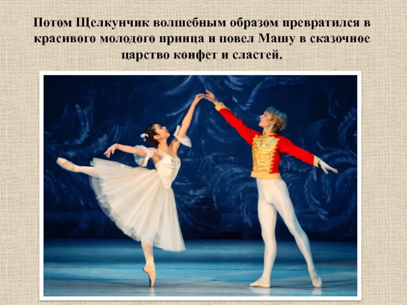 Слайд 11Потом Щелкунчик волшебным образом превратился в красивого молодого принца и повел