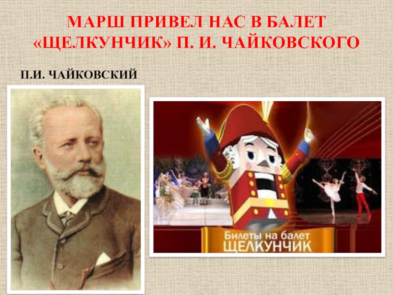 Слайд 7МАРШ ПРИВЕЛ НАС В БАЛЕТ «ЩЕЛКУНЧИК» П. И. ЧАЙКОВСКОГО