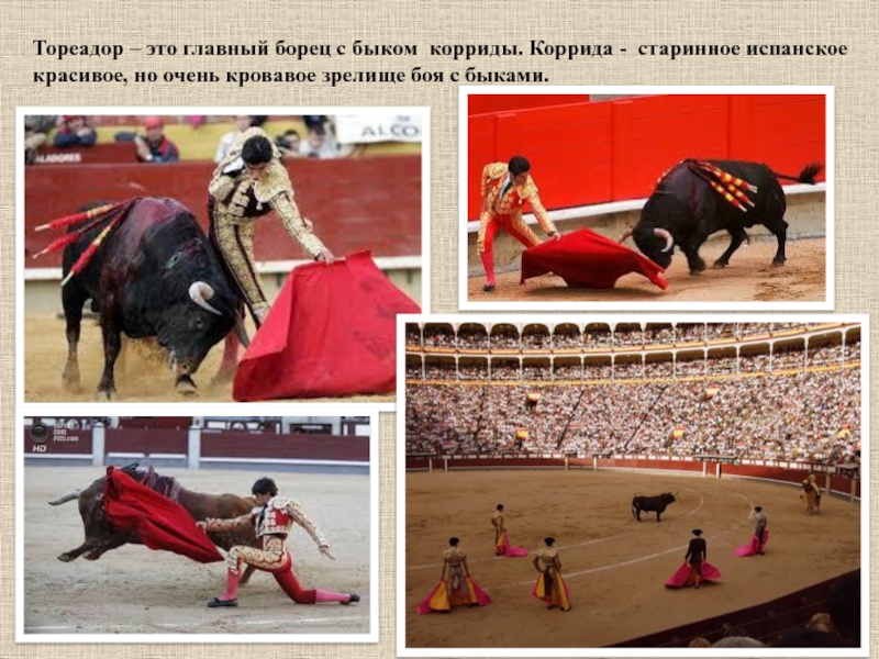 Слайд 15Тореадор – это главный борец с быком корриды. Коррида - старинное