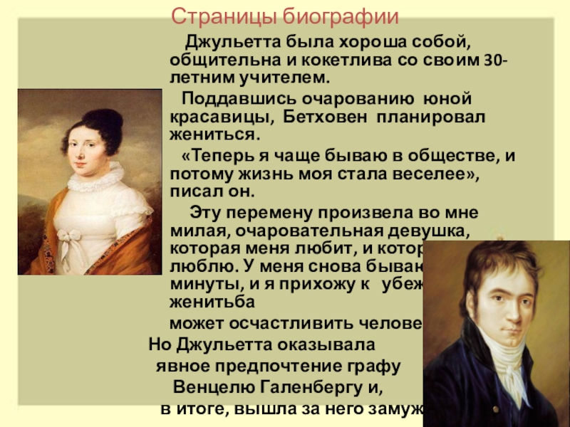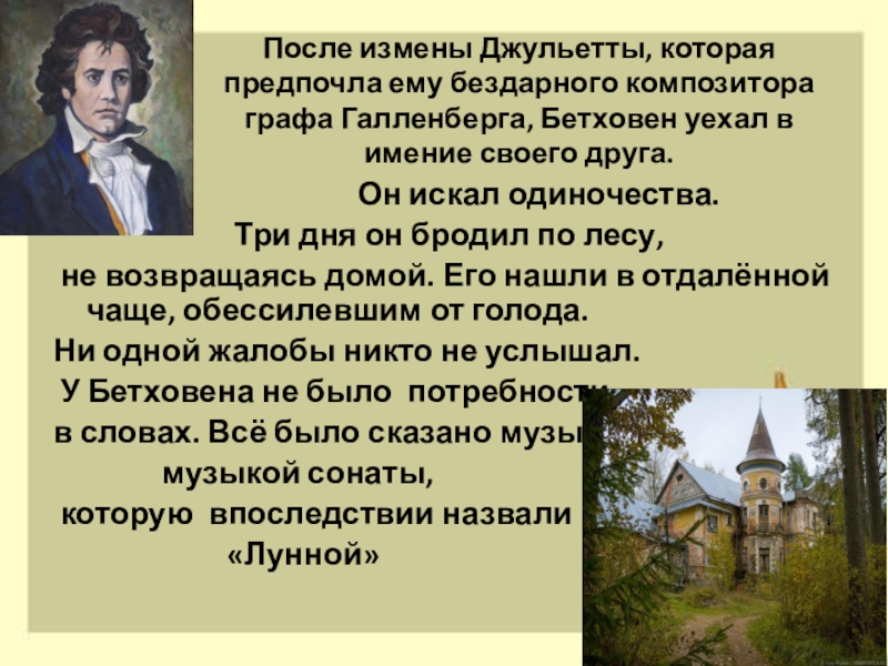 После измены Джульетты, которая предпочла ему бездарного композитора графа Галленберга, Бетховен