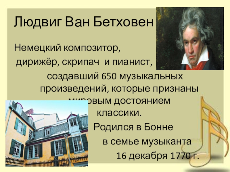 Бетховен приобщился к музыке в раннем возрасте. Музыкальными занятиями первоначально