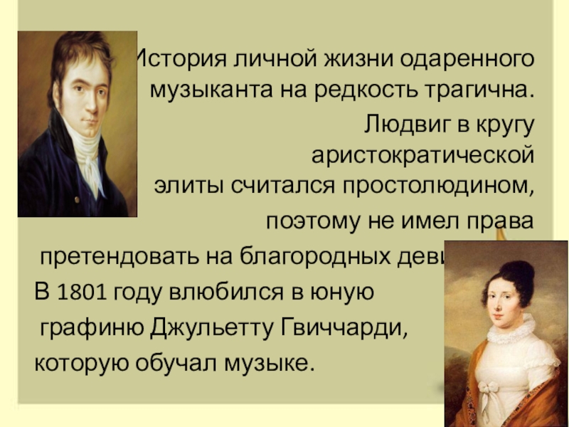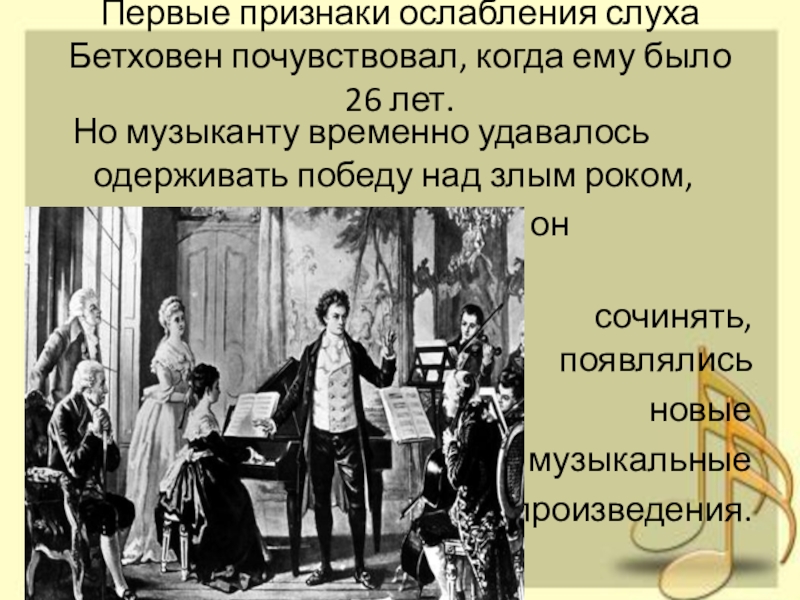 Слайд 8Первые признаки ослабления слуха Бетховен почувствовал, когда ему было 26 лет.