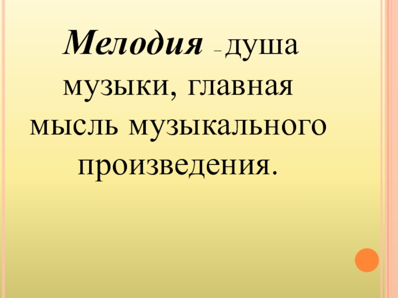 Слайд 5 Мелодия – душа музыки, главная мысль музыкального произведения.