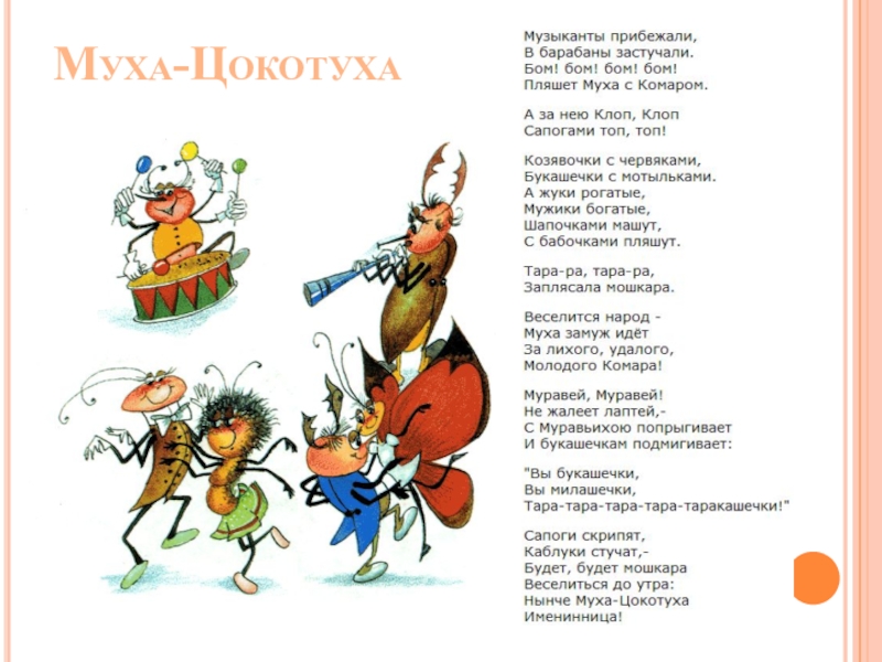 Чуковский Корней Иванович (1882-1969) - русский писатель, поэт, переводчик, литературовед. Настоящее имя и фамилия - Николай Васильевич Корнейчуков. Его знаменитые сказки «Мойдодыр» и «Тараканище» (1923), «Муха-Цокотуха» (1924) ", «Бармалей» (1925), «Телефон» (1926), "Федорино горе" (1926 г.), — непревзойденные шедевры литературы .