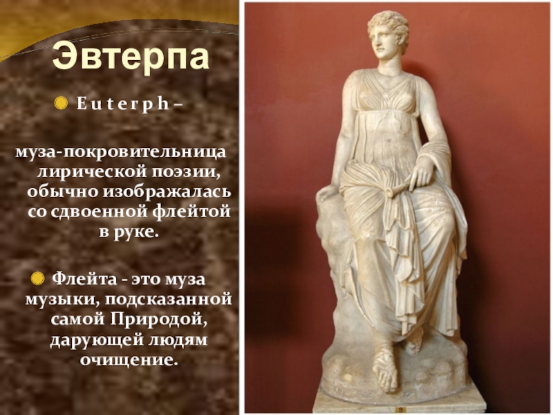 муза-покровительница лирической поэзии, обычно изображалась со сдвоенной