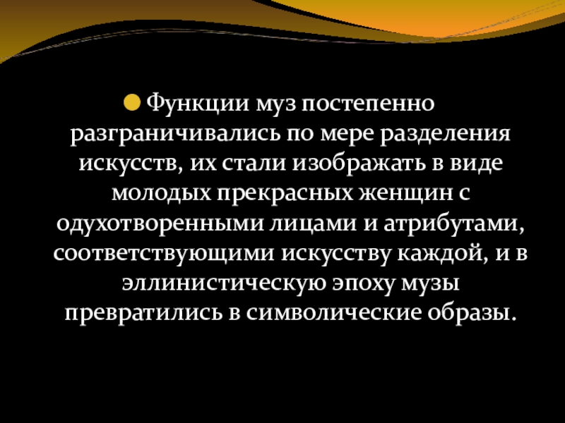 Слайд 6Функции муз постепенно разграничивались по мере разделения искусств, их стали изображать