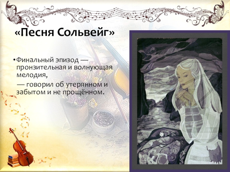 «Песня Сольвейг»Финальный эпизод — пронзительная и волнующая мелодия,  — говорил об утерянном и забытом и не