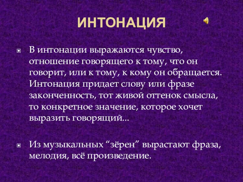 В интонации выражаются чувство, отношение говорящего к тому, что он говорит,