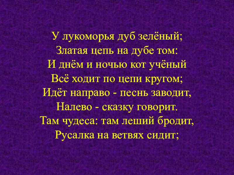 Слайд 22У лукоморья дуб зелёный;