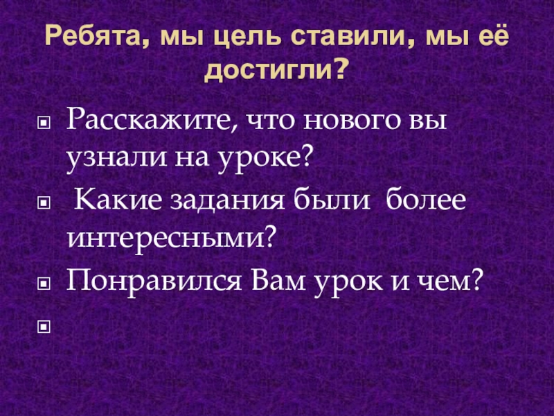 Слайд 33Ребята, мы цель ставили, мы её достигли?