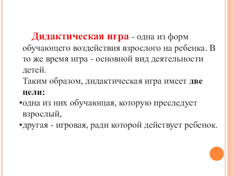 Слайд 2 Дидактическая игра - одна из форм обучающего воздействия взрослого