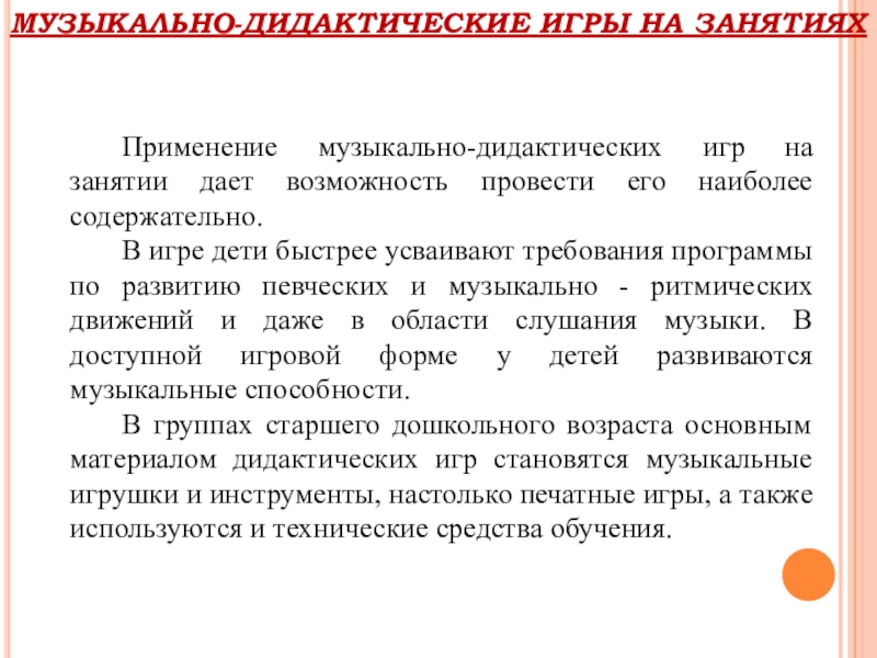 Слайд 5МУЗЫКАЛЬНО-ДИДАКТИЧЕСКИЕ ИГРЫ НА ЗАНЯТИЯХ