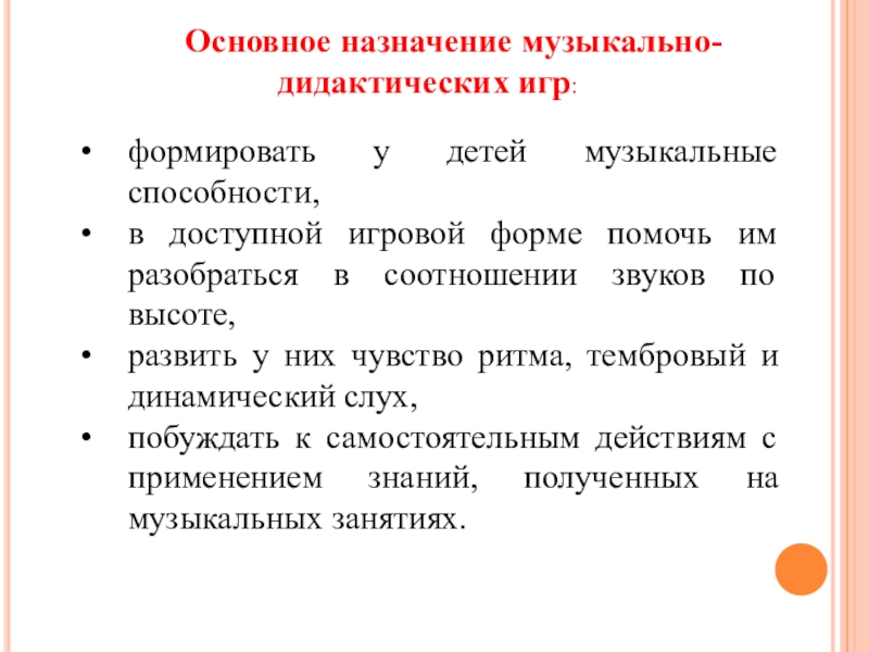 Слайд 3Основное назначение музыкально-дидактических игр: