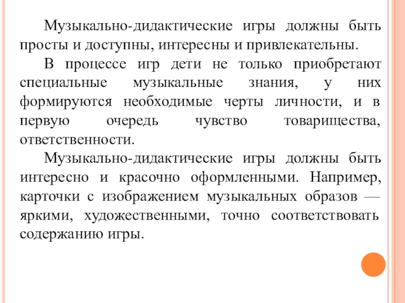 Слайд 4Музыкально-дидактические игры должны быть просты и доступны, интересны и привлекательны.