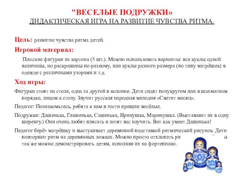 ДИДАКТИЧЕСКАЯ ИГРА НА РАЗВИТИЕ ЧУВСТВА РИТМА.