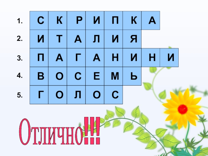 CК РИПЛИТАКПААИЯНГАНИВОСЕИМЬГОЛОС1.2.3.4.5.Отлично!!!