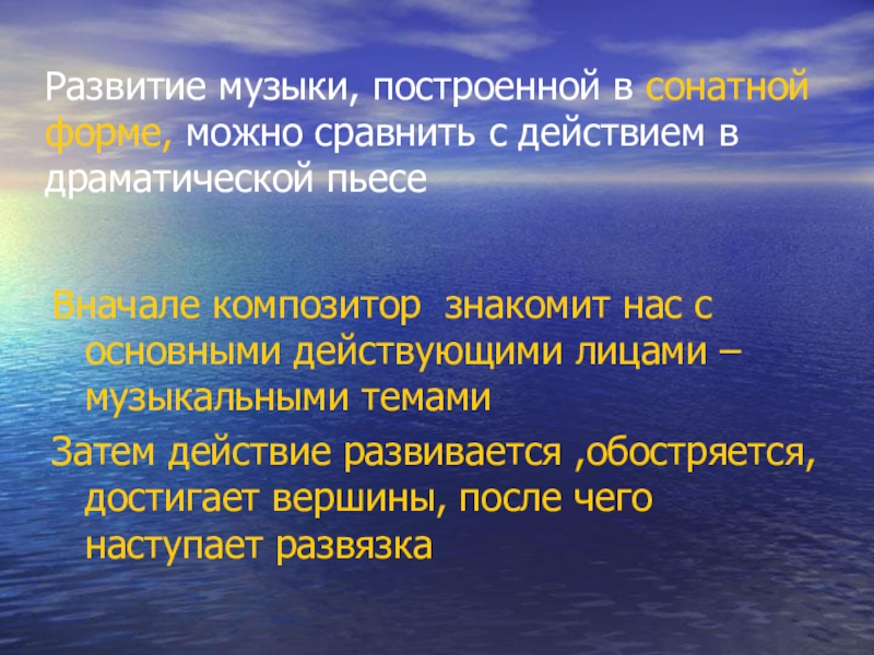 Вначале композитор знакомит нас с основными действующими лицами –музыкальными темами