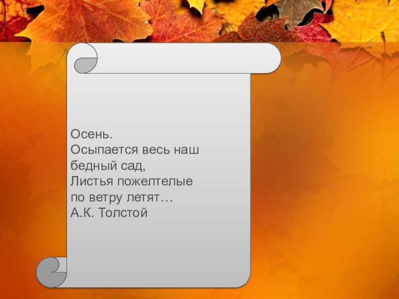 Осень. Осыпается весь наш бедный сад,Листья пожелтелые по ветру летят…А.К. Толстой