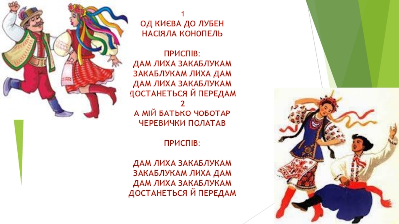 1ОД КИЄВА ДО ЛУБЕННАСІЯЛА КОНОПЕЛЬПРИСПІВ:ДАМ ЛИХА ЗАКАБЛУКАМ ЗАКАБЛУКАМ ЛИХА ДАМДАМ ЛИХА ЗАКАБЛУКАМ ДОСТАНЕТЬСЯ Й ПЕРЕДАМ2 А МІЙ