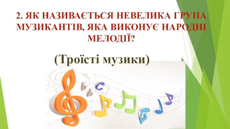 2. ЯК НАЗИВАЄТЬСЯ НЕВЕЛИКА ГРУПА МУЗИКАНТІВ, ЯКА ВИКОНУЄ НАРОДНІ МЕЛОДІЇ?(Троїсті музики)