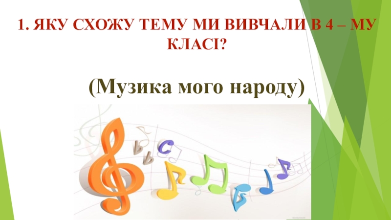1. ЯКУ СХОЖУ ТЕМУ МИ ВИВЧАЛИ В 4 – МУ КЛАСІ?(Музика мого народу)