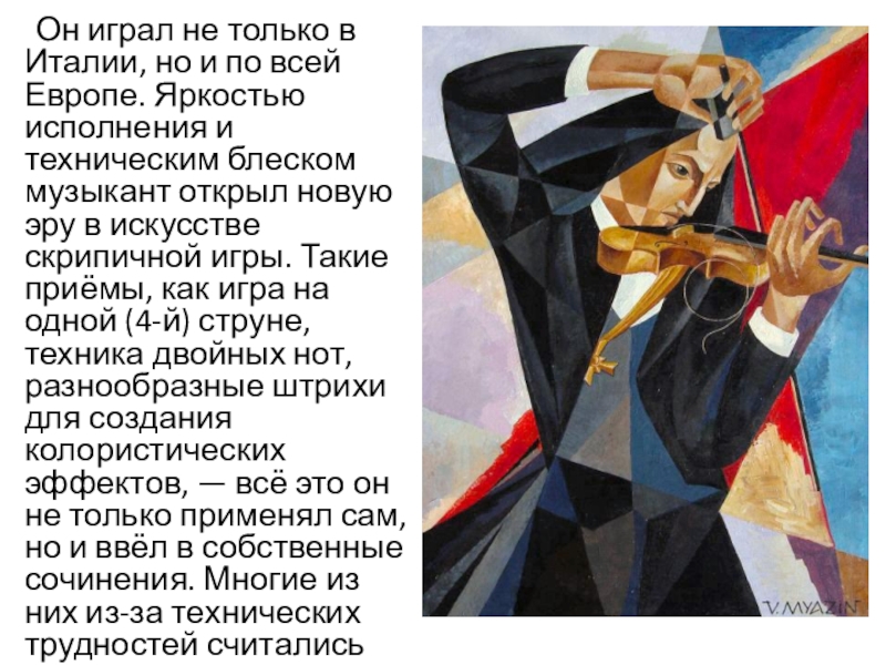 Он играл не только в Италии, но и по всей Европе. Яркостью исполнения и техническим блеском музыкант
