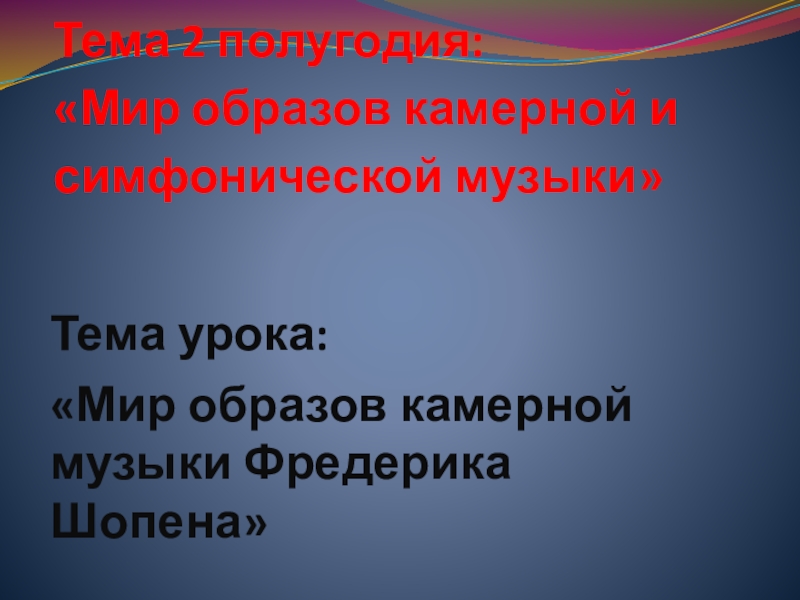 Тема 2 полугодия:  «Мир образов камерной и симфонической музыки» Тема урока:«Мир образов камерной музыки Фредерика