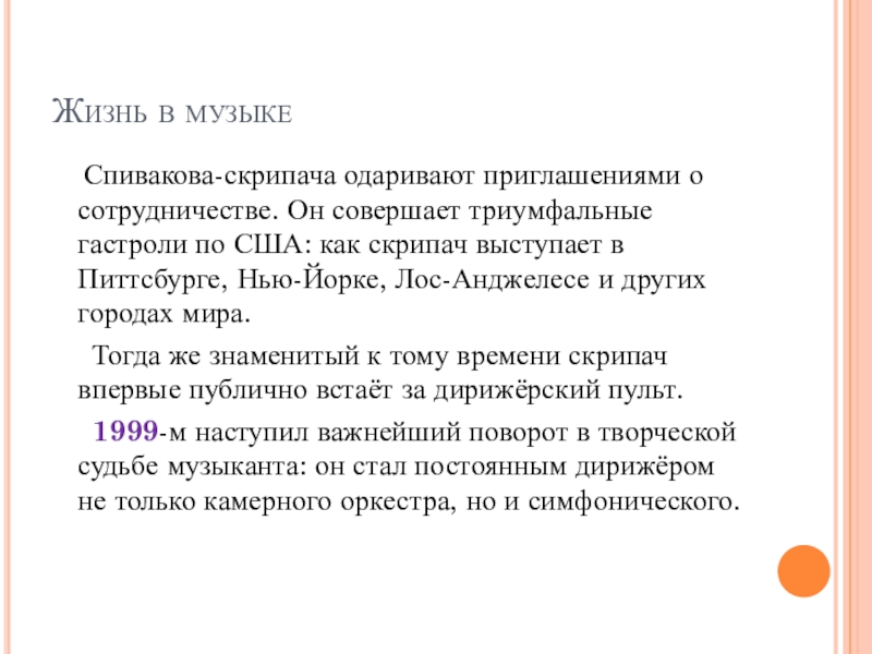 Спивакова-скрипача одаривают приглашениями о сотрудничестве. Он совершает