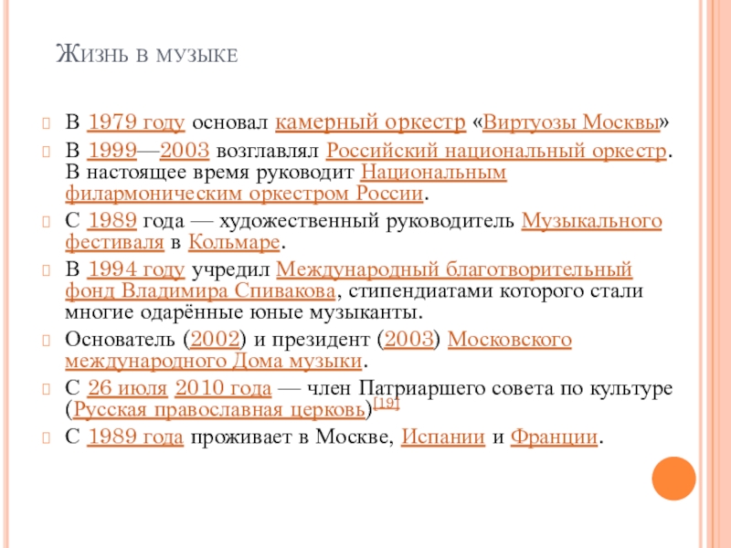 В 1999—2003 возглавлял Российский национальный оркестр. В настоящее время