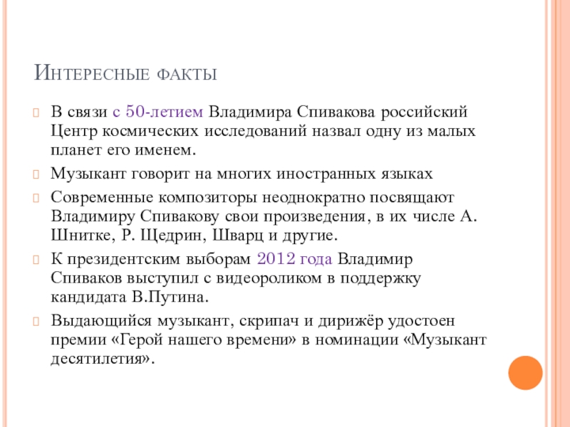 «Владимир Спиваков принадлежит к числу лучших представителей исполнительского