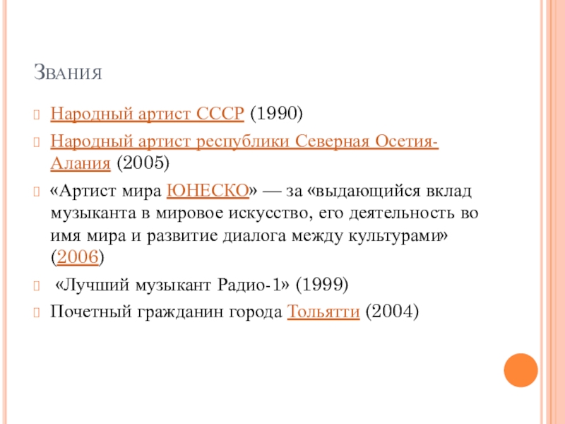 «Артист мира ЮНЕСКО» — за «выдающийся