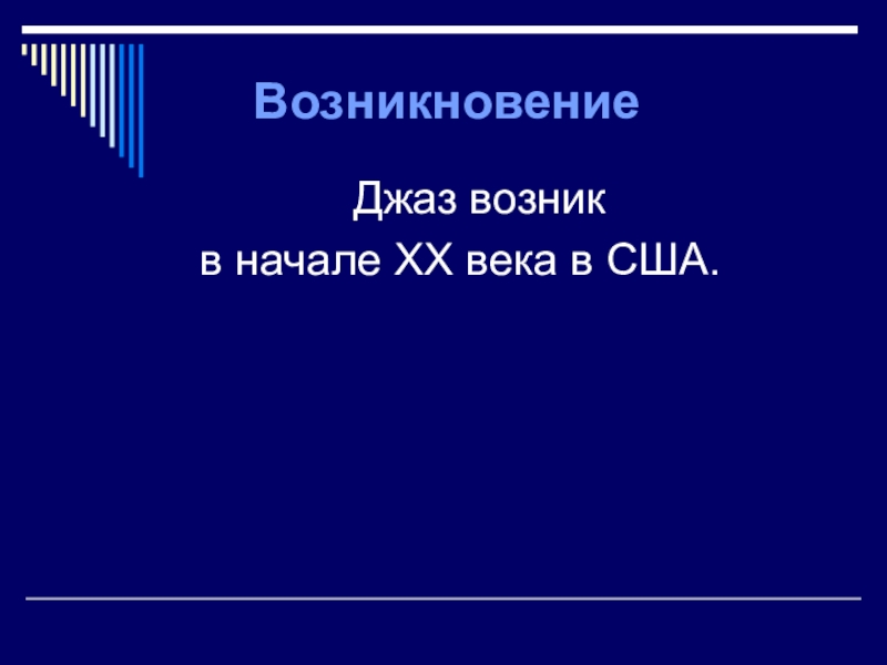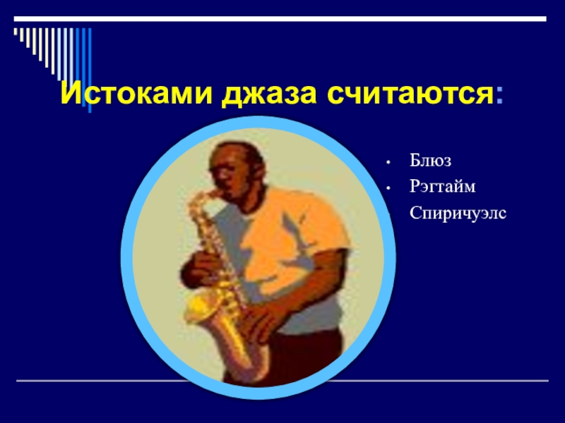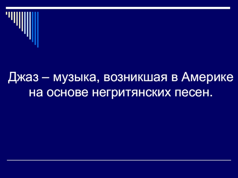 Слайд 7Джаз – музыка, возникшая в Америке на основе негритянских песен.