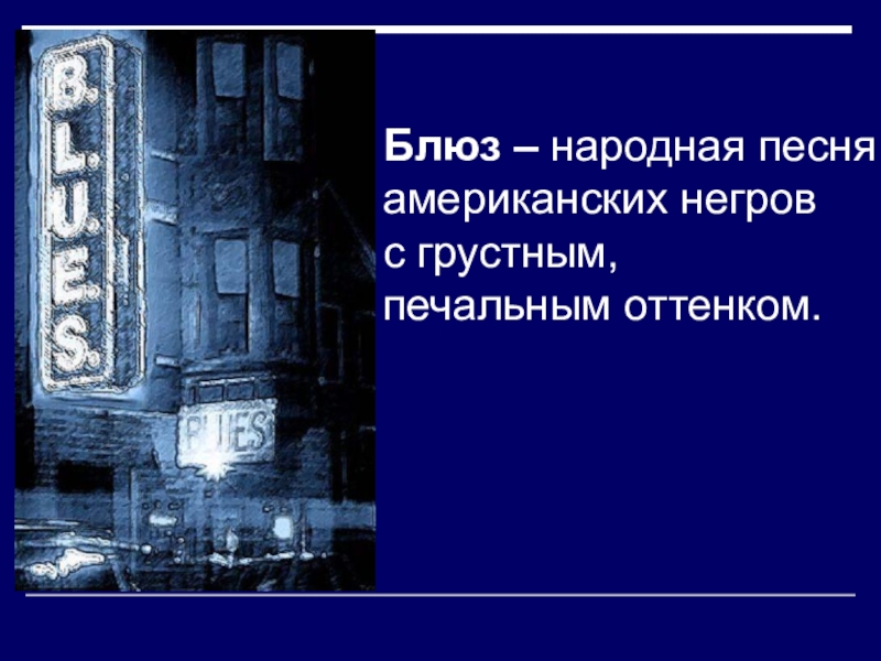 Блюз – народная песня американских негров  с грустным,  печальным оттенком.