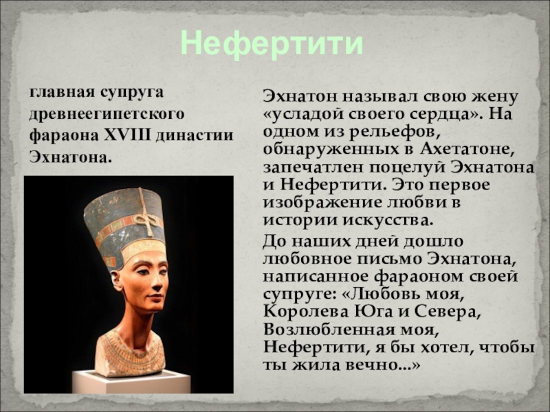 главная супруга древнеегипетского фараона XVIII династии Эхнатона.
