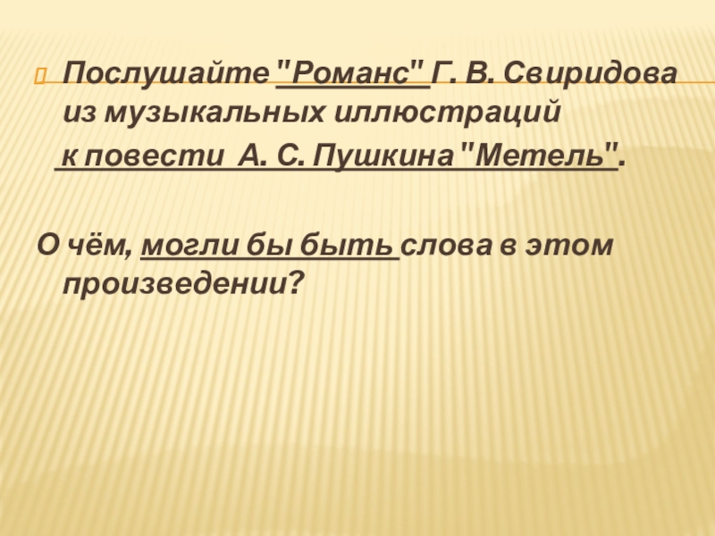 Слайд 6Послушайте "Романс" Г. В. Свиридова из музыкальных иллюстраций