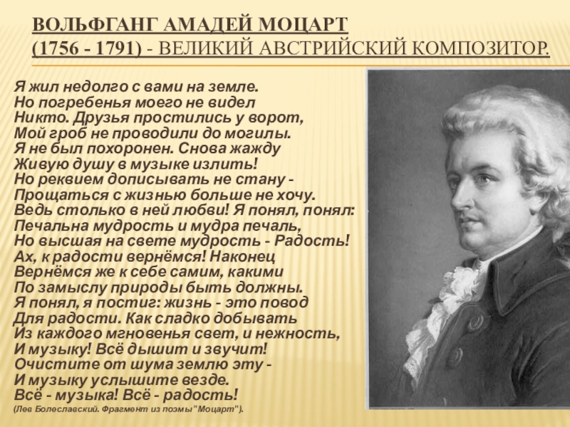 (1756 - 1791) - великий австрийский композитор.