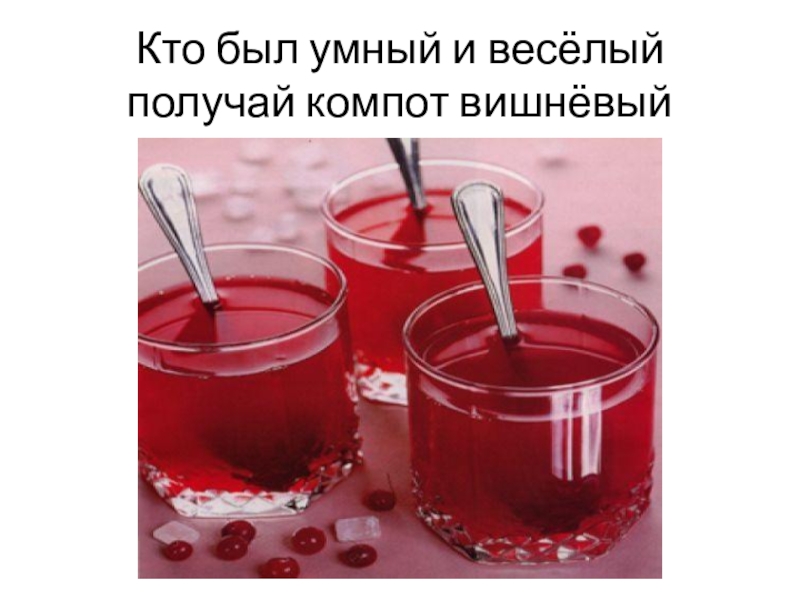 Слайд 15Кто был умный и весёлый получай компот вишнёвый