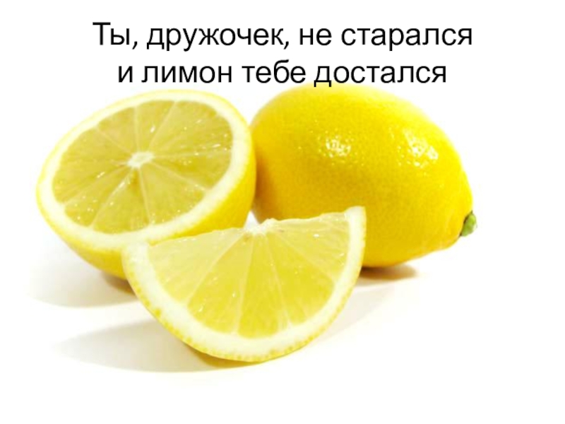 Слайд 17Ты, дружочек, не старался и лимон тебе достался